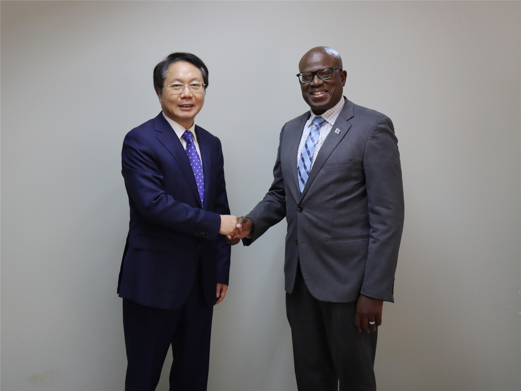 2023年4月13日,驻博茨瓦纳大使王雪峰拜会博通讯、知识与技术部长塞霍科,就加强双边科技创新合作交换意见。