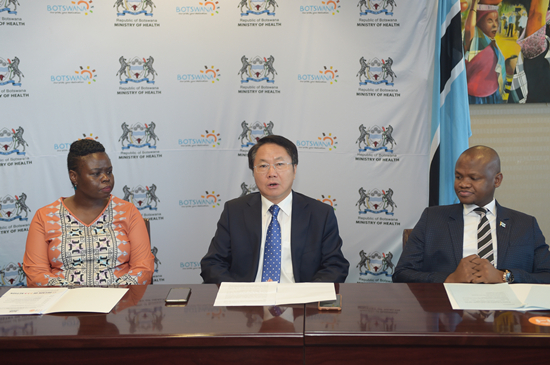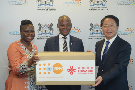 驻博茨瓦纳大使王雪峰出席援博医疗防护和生殖健康物资交接仪式